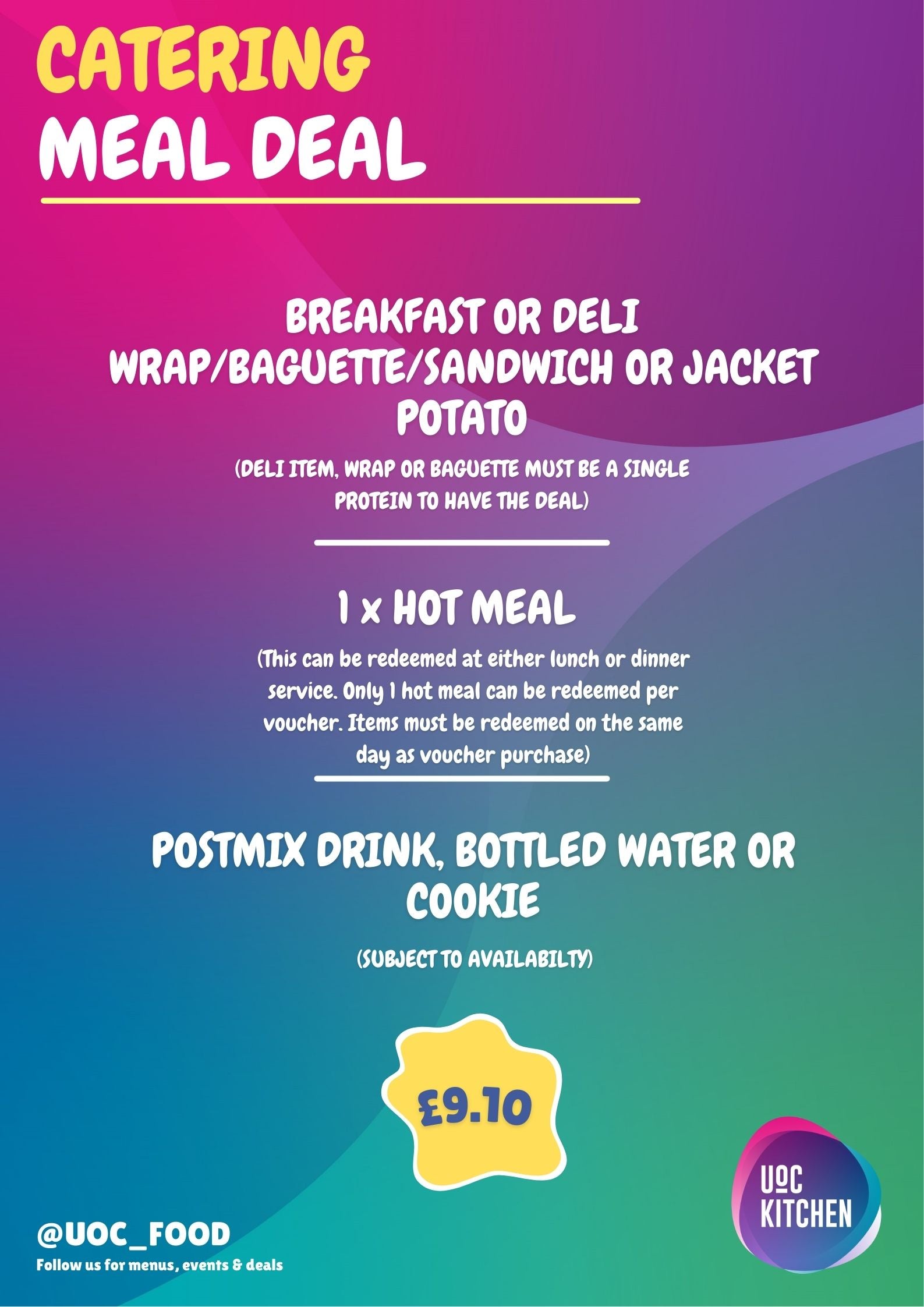 Deli wrap, baguette or sandwich, + Full hot meal voucher, + Postmix drink - £9.10