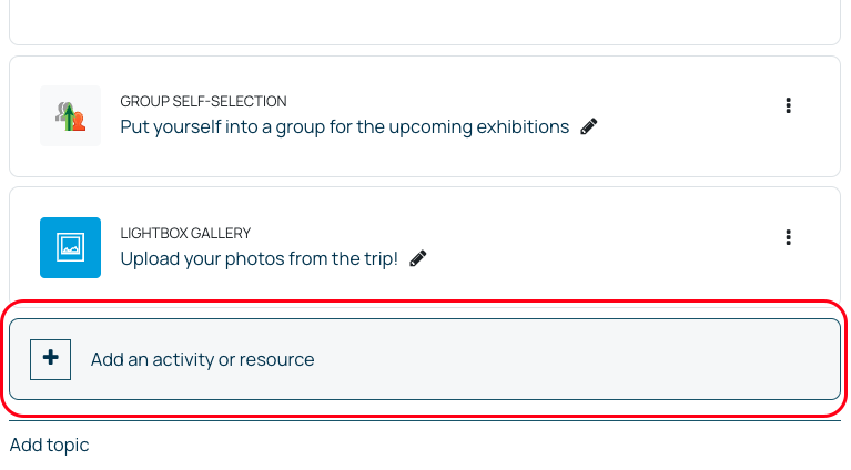 - Select to add a new Activity or resource