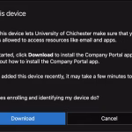 - When prompted to do so, agree with the dialogue to download and install the ‘Company Portal’