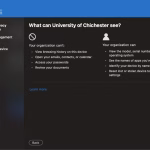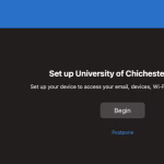 - When prompted with ‘Set Up University of Chichester Access’ select ‘Begin’