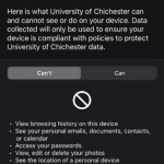 In a more sophisticated form, MDM software will interrogate the device each time it tries to connect to the University, assessing the devices for the presence of malware, how well the devices security is configured, and absence of up to date safeguarding. Access to the University;’s Multi-factor-login mechanisms will only be granted if the device meets the MDM standards set out by University.