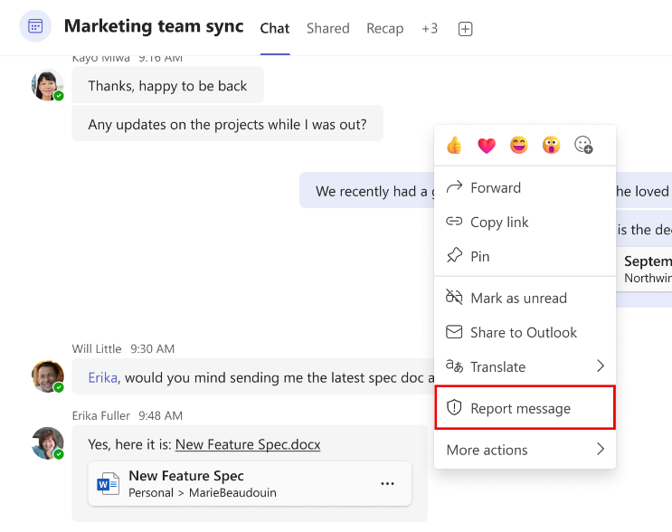Report a suspicious Teams message